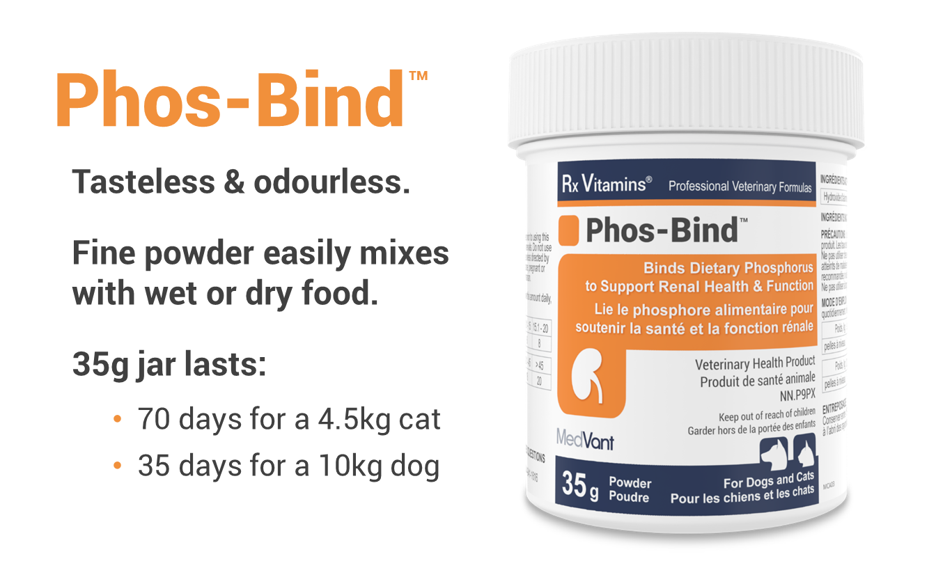 Phos-Bind works by binding with dietary phosphorus in the boweI, preventing absorption into the bloodstream.
