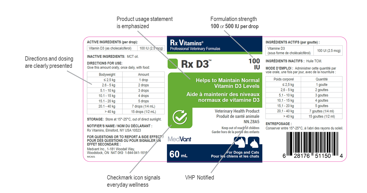 For Rx D3, it is now easier to differentiate between the 100 IU and 500 IU strengths, and to select the correct dosing.